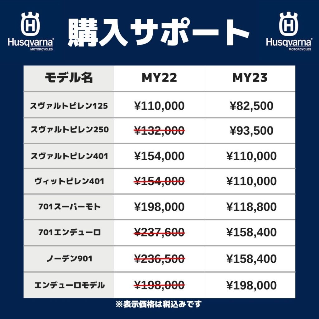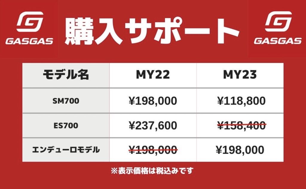 エンデューロバイクはハスクバーナ同様、198,000円(税込)の購入サポートです。